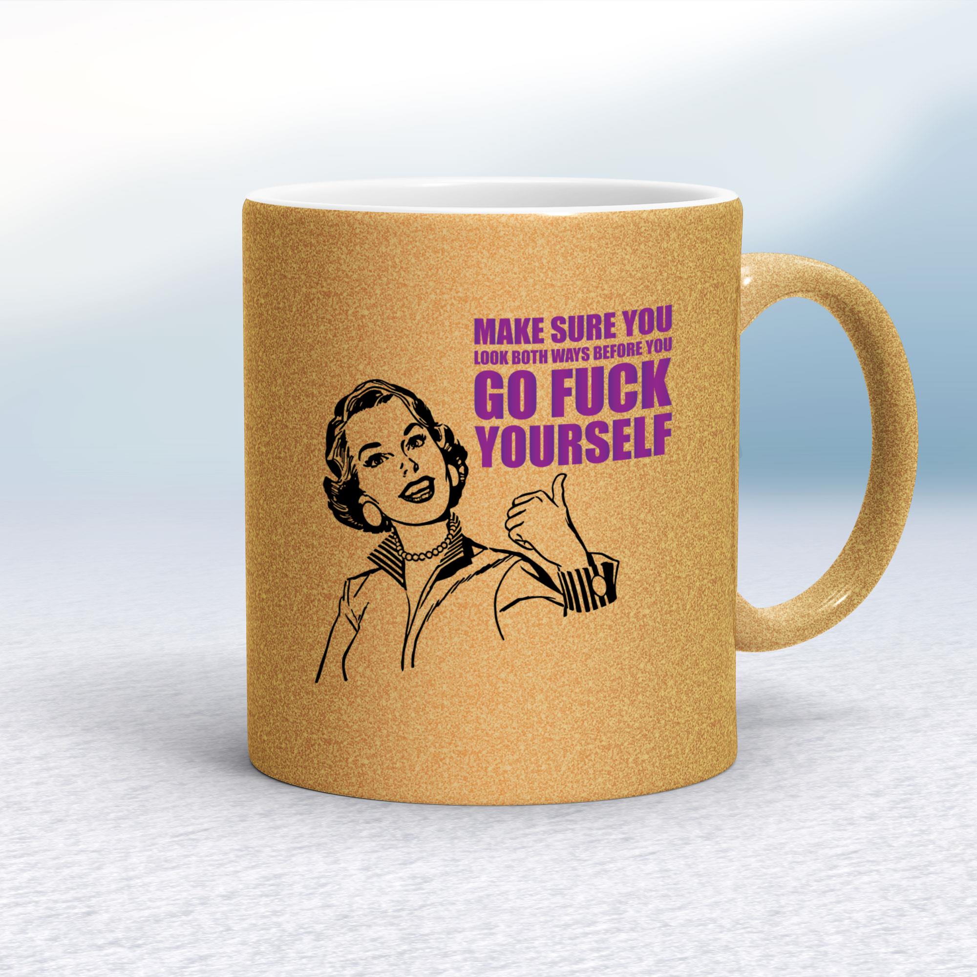 Our Before You Go Fuck Yourself mug is hand-printed on both sides (front/back) of a high-quality mug and is available in a variety of styles and colours.