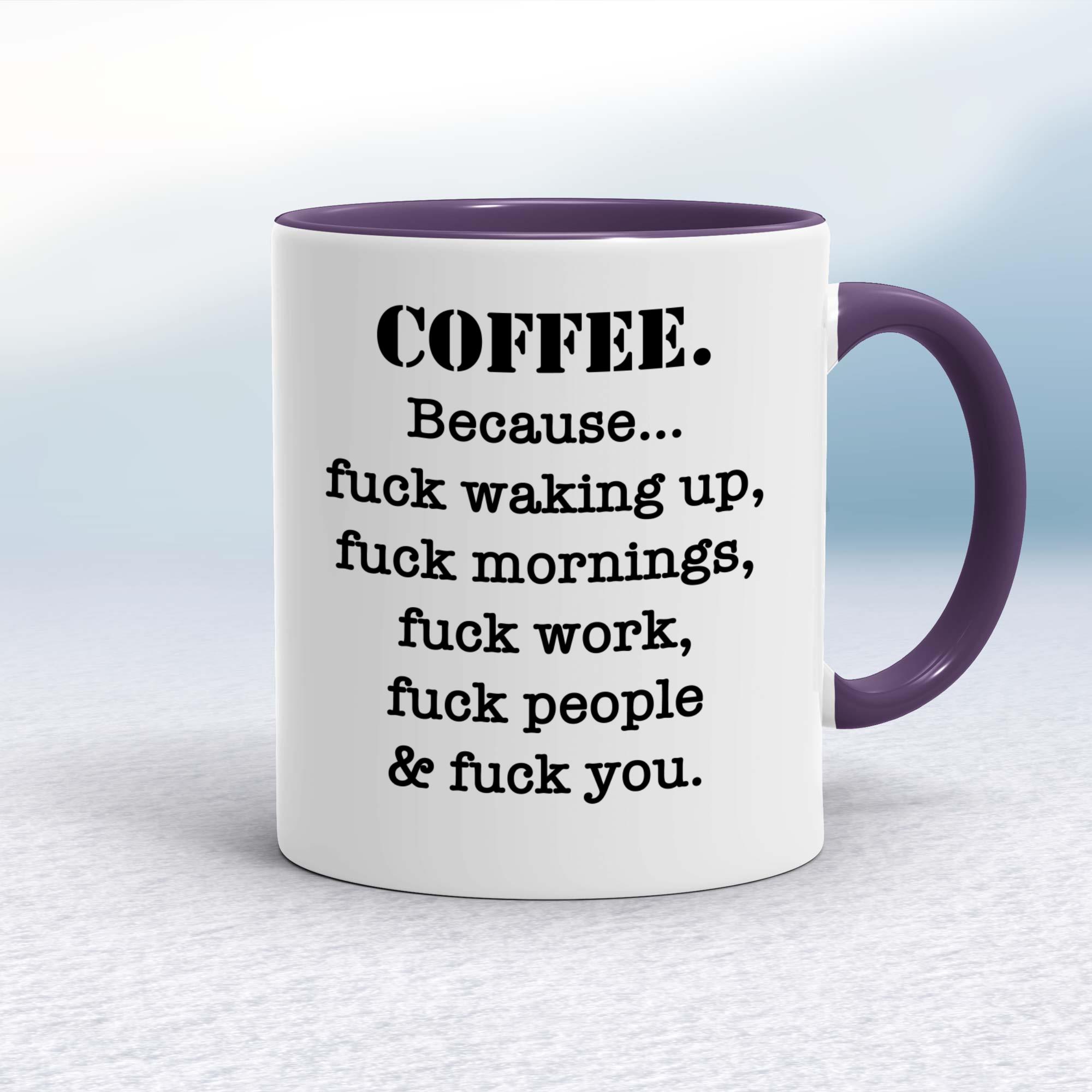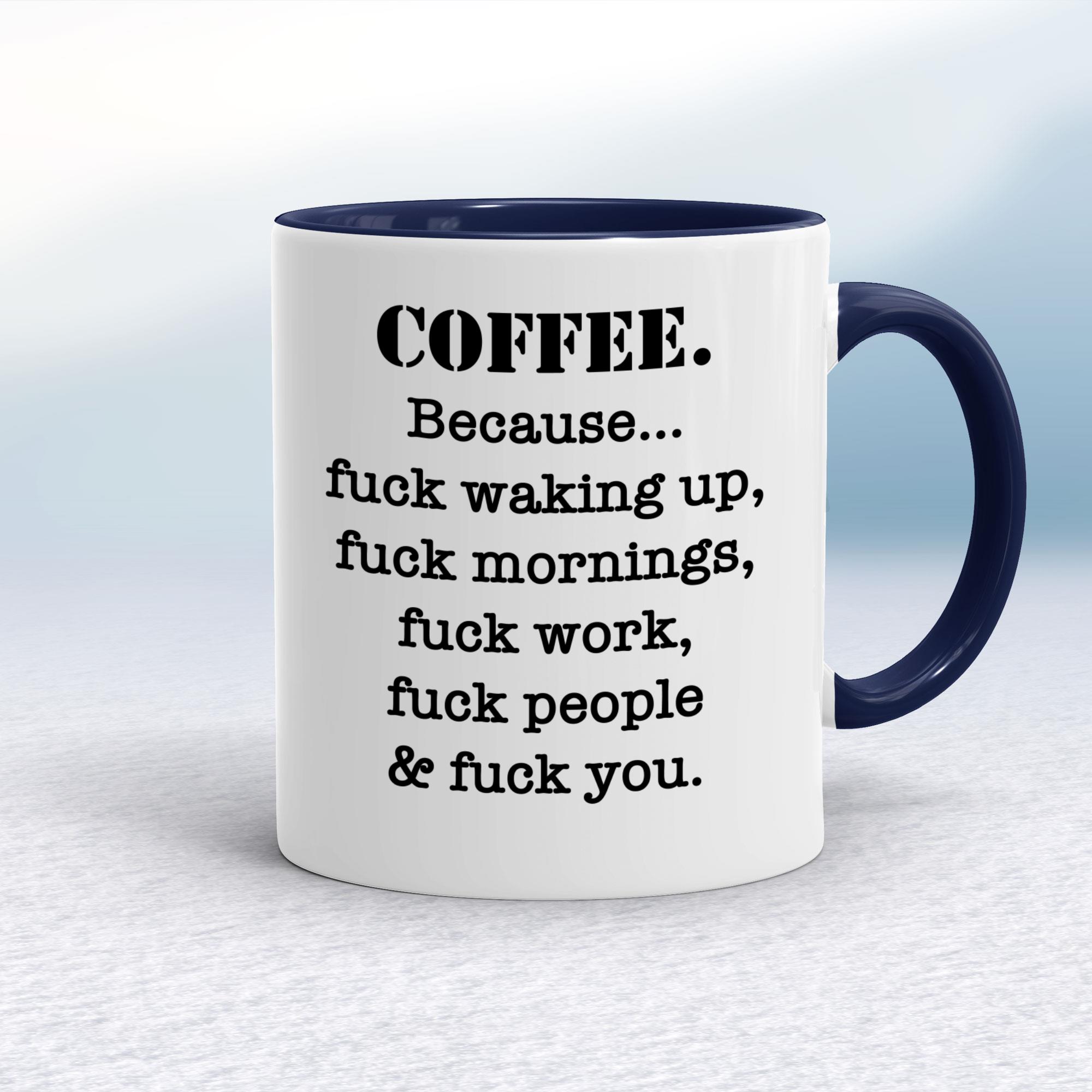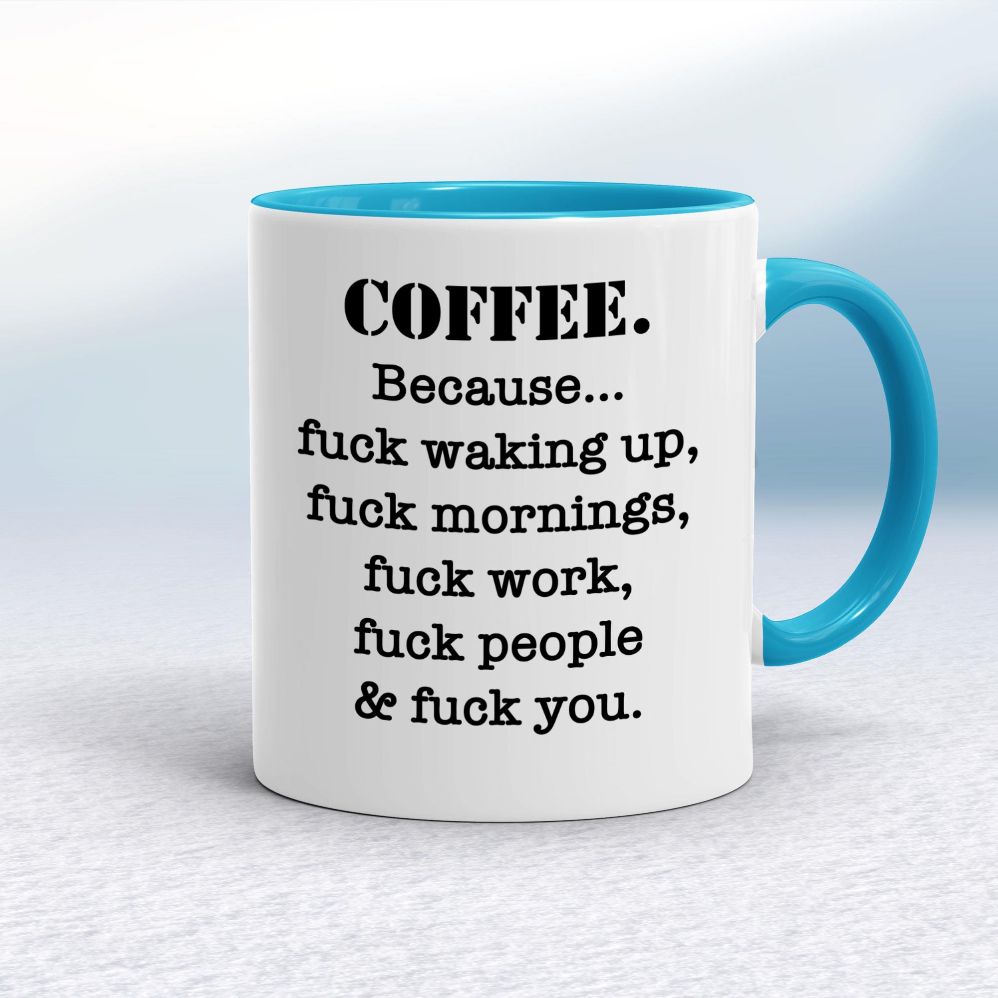 Our Coffee Because mug is hand-printed on both sides (front/back) of a high-quality mug and is available in a variety of styles and colours.