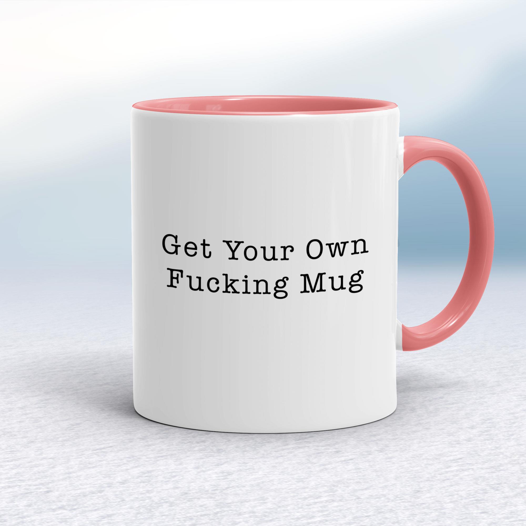 Our Get Your Own Fucking Mug mug is hand-printed on both sides (front/back) of a high-quality mug and is available in a variety of styles and colours.