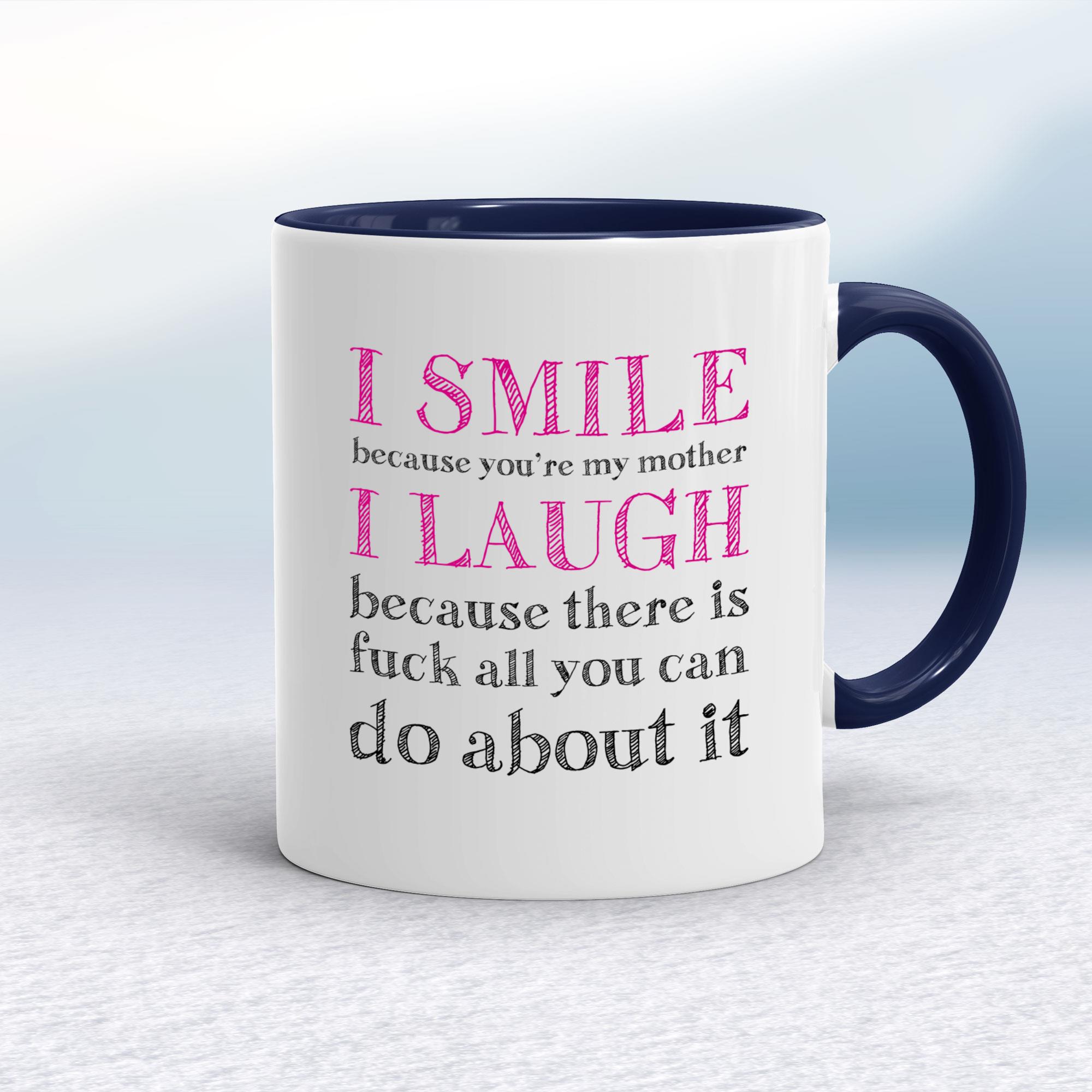 Our I Smile Because You’re My Mother mug is hand-printed on both sides (front/back) of a high-quality mug and is available in a variety of styles and colours.