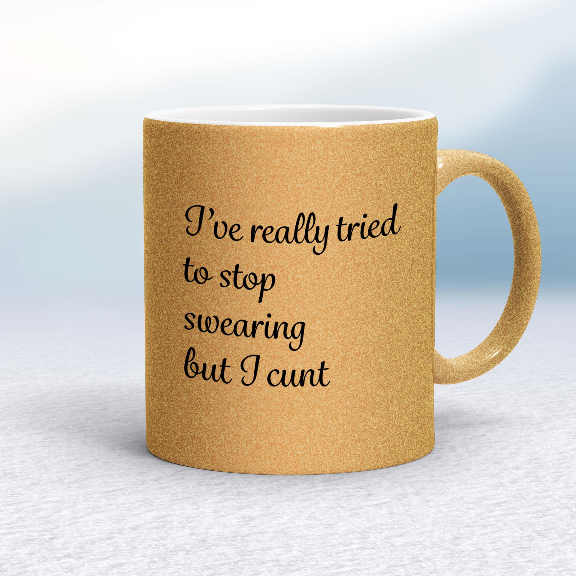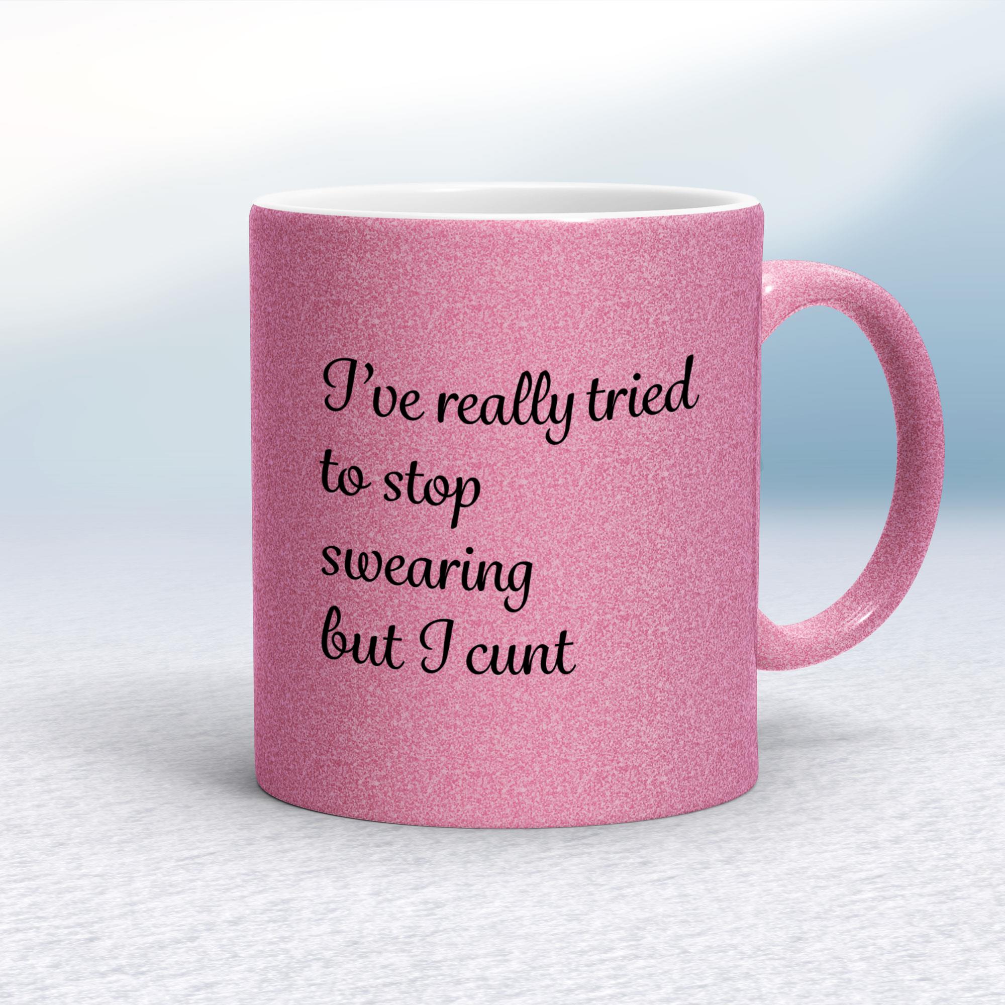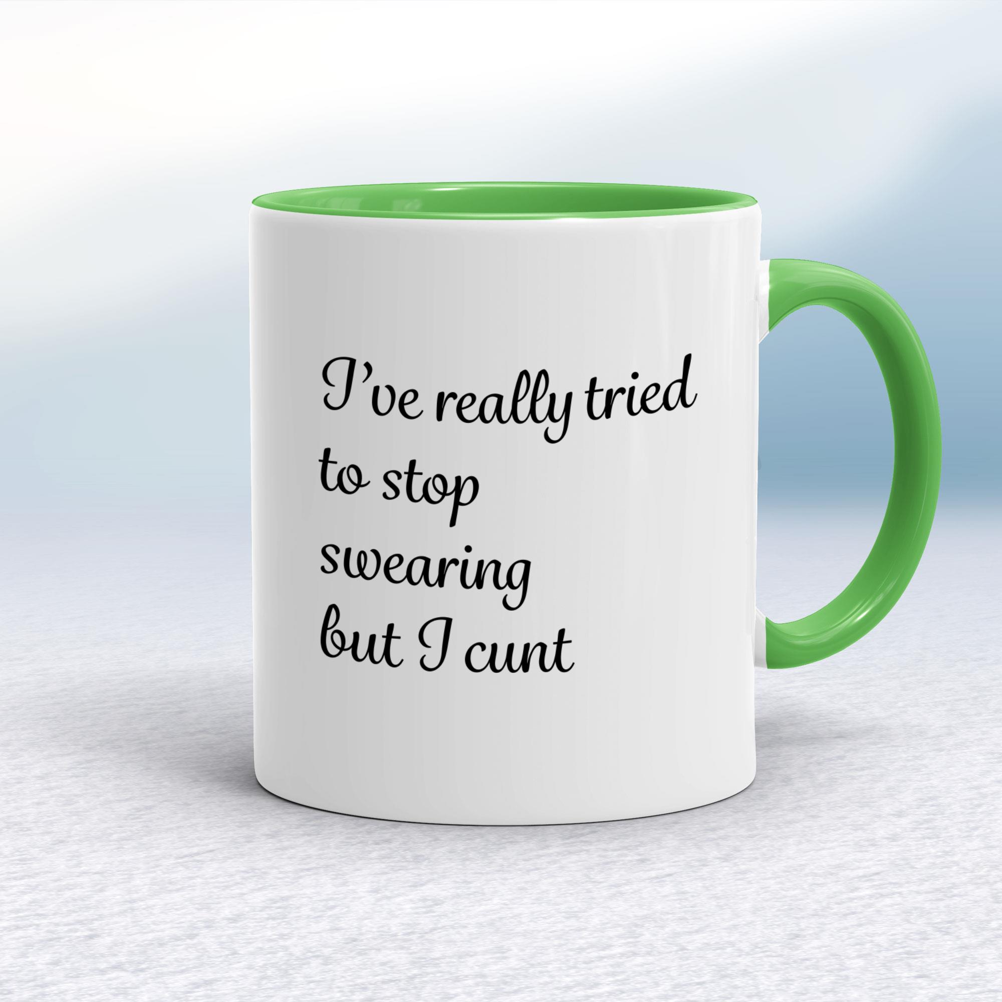 Our I’ve Really Tried to Stop Swearing But I Cunt mug is hand-printed on both sides (front/back) of a high-quality mug and is available in a variety of styles and colours.