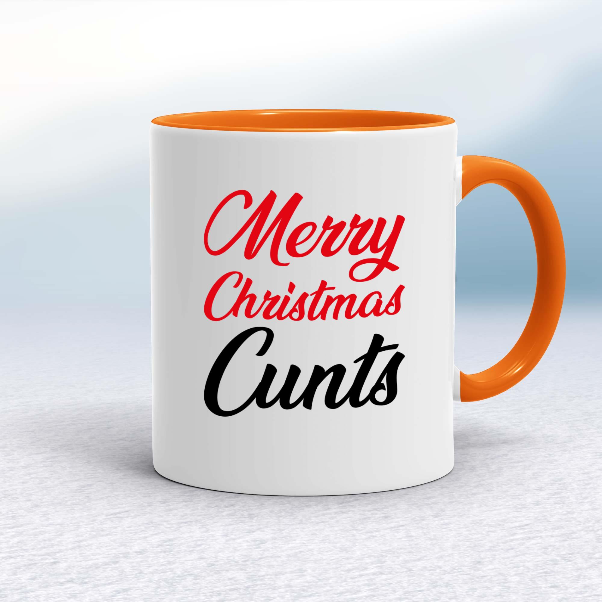 Our Merry Christmas Cunts mug is hand-printed on both sides (front/back) of a high-quality mug and is available in a variety of styles and colours.