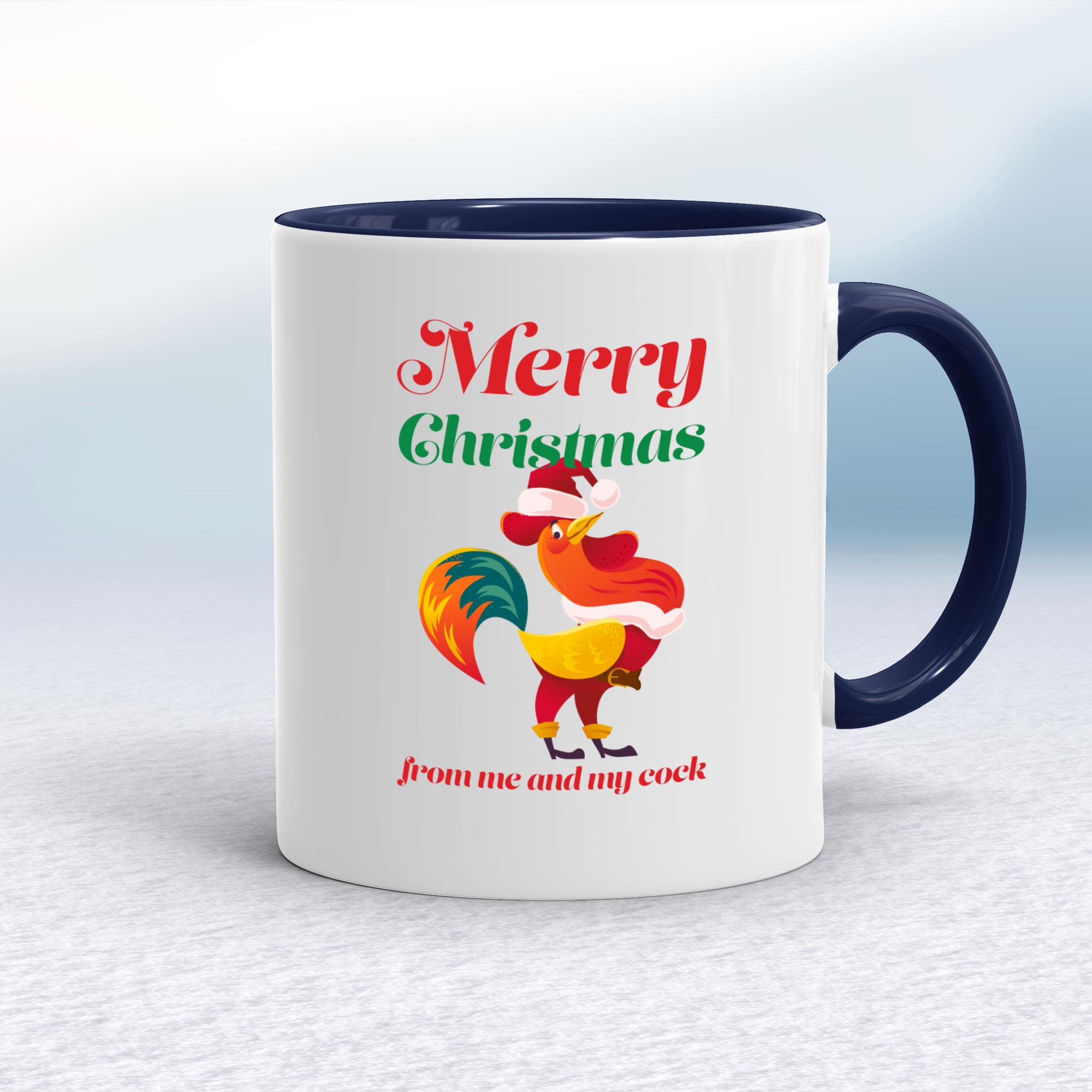 Our Merry Christmas From Me And My Cock mug is hand-printed on both sides (front/back) of a high-quality mug and is available in a variety of styles and colours.