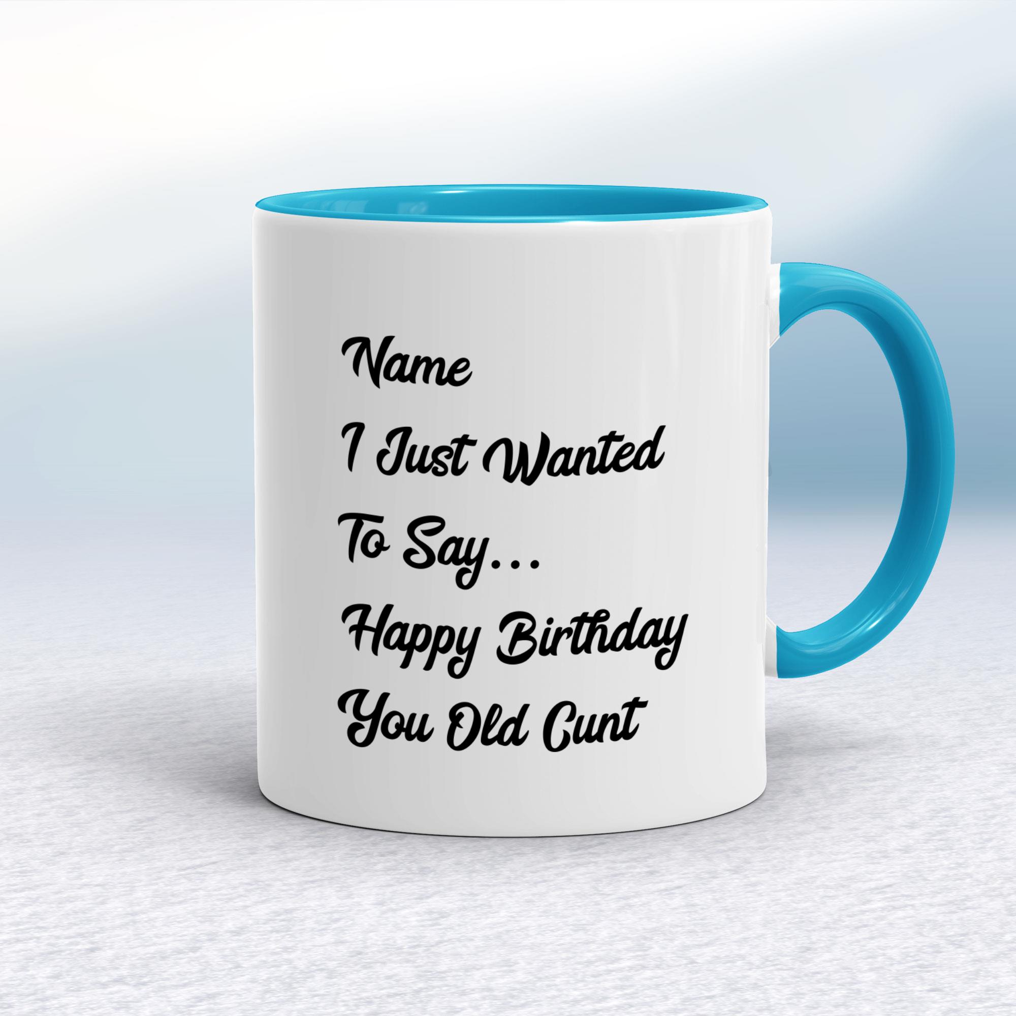 Our Personalised You Old Cunt mug is hand-printed on both sides (front/back) of a high-quality mug and is available in a variety of styles and colours.